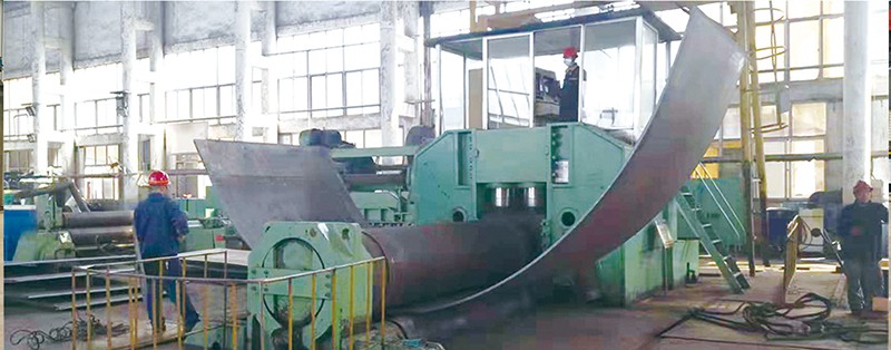 簡析卷板機的工作原理及應用范圍卷板機是對板料進行連續點彎曲的塑形機床,具有卷制O 同的形狀卷板機規格平整的塑性金屬板通過卷板機的三根工作輥(二根下輥、一根上輥) 之間,借助上輥的下壓及下輥的旋轉運動,使金屬板經過多道次連續彎曲(內層 壓縮變形,中層不變,外層拉伸變形),產生塑性變形,卷制成所需要 的圓筒、錐筒或它們的一部分。 卷板機的工作原理是卷板機上輥在兩下輥中央對稱位置通過液壓缸內的液壓油作用于活塞作垂直升降運動,通過主減速機的末級齒輪帶動兩下輥齒輪嚙合作旋轉 運動,為卷制板材提供扭矩。借助上輥的下壓及下輥的旋轉運動,使金屬板經過 多道次連續彎曲,產生塑性變形,卷制成所需要的園筒、錐筒或它們的一部分。